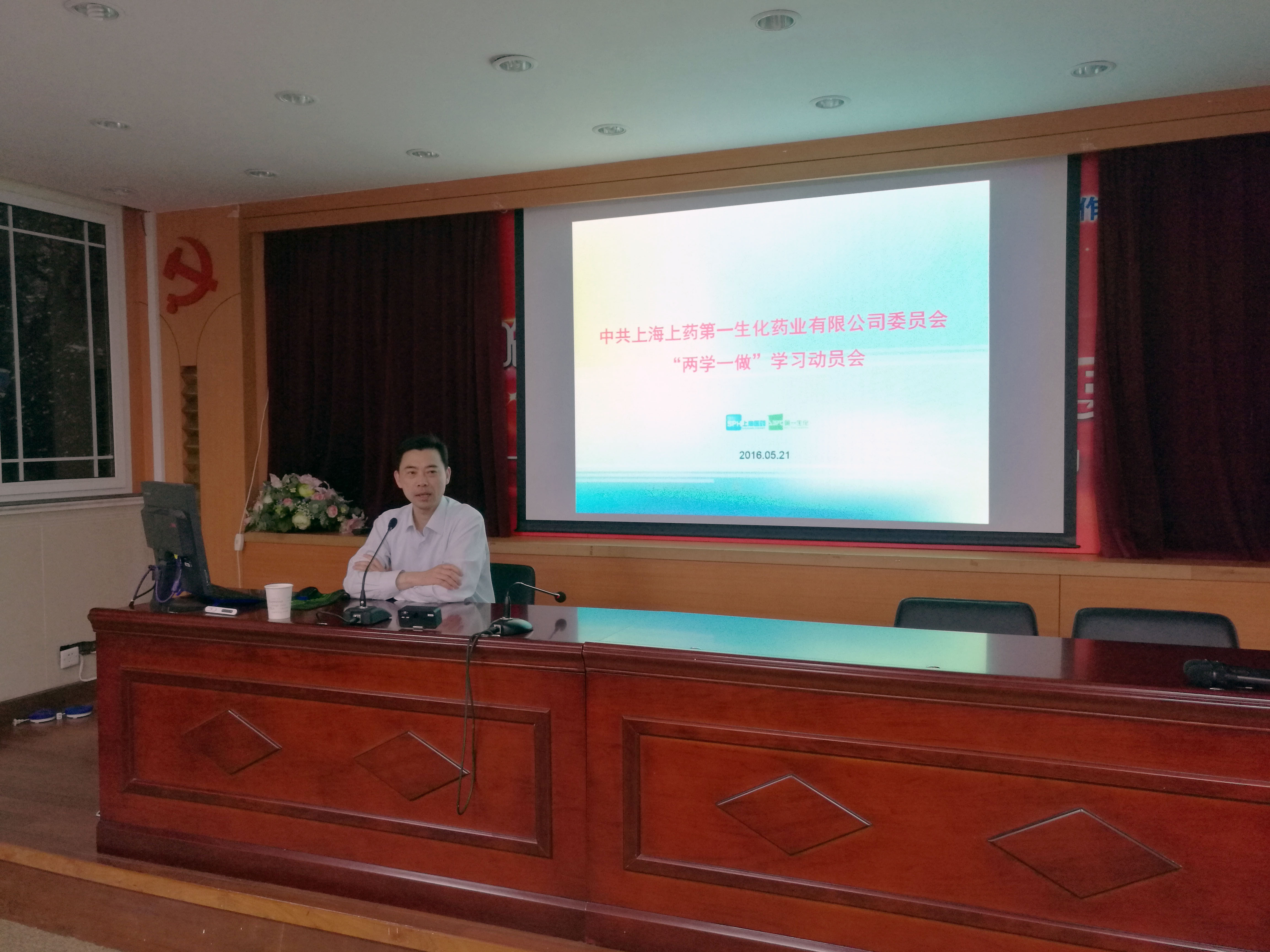5月21日,上药第一生化以及下属长城药业、三维生物、紫源制药三家子公司在内120多名全体党员走进集团党校,举行“两学一做”学习动员会。本次党课主要从“强党性、守规矩、做合格共产党员——《准则》《条例》学习体会”、“凝心聚力、扬帆远航——学习贯彻《国民经济和社会发展第十三个五年规划纲要》”两方面内容进行讲解与展开。公司党委书记孙忠达向学习动员大会作了“关于开展‘两学一做’学习教育实施方案”,从总体要求、学习教育内容、主要措施、时间安排、组织领导等五部分内容向公司全体党员作了详细阐述与全面动员,并强调要把“两学一做”学习教育作为一次长流水、不断线的经常性教育,聚焦重点,正面教育,用好日常、多元推动,引导党员干部进一步改造主观世界,增强行动自觉。