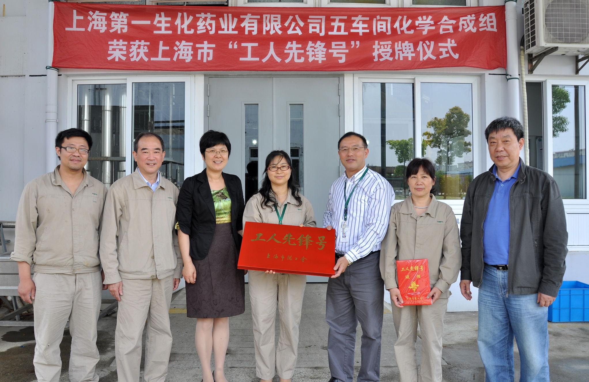 上海第一生化药业有限公司五车间化学合成小组,是公司丹参酮ⅡA磺酸钠原料的生产、供应小组。小组自生产丹参酮IIA磺酸钠原料以来,在集团和公司领导的关心支持下,凭借坚持不懈的努力,刻苦钻研的精神,在仅仅两年不到的时间里,使生产工艺大幅改进,产品收率得到较大提高,年利润明显增长,在企业近几年的发展过程中发挥了积极作用。由此,小组荣获了2011年上海市“工人先锋号”的荣誉称号。