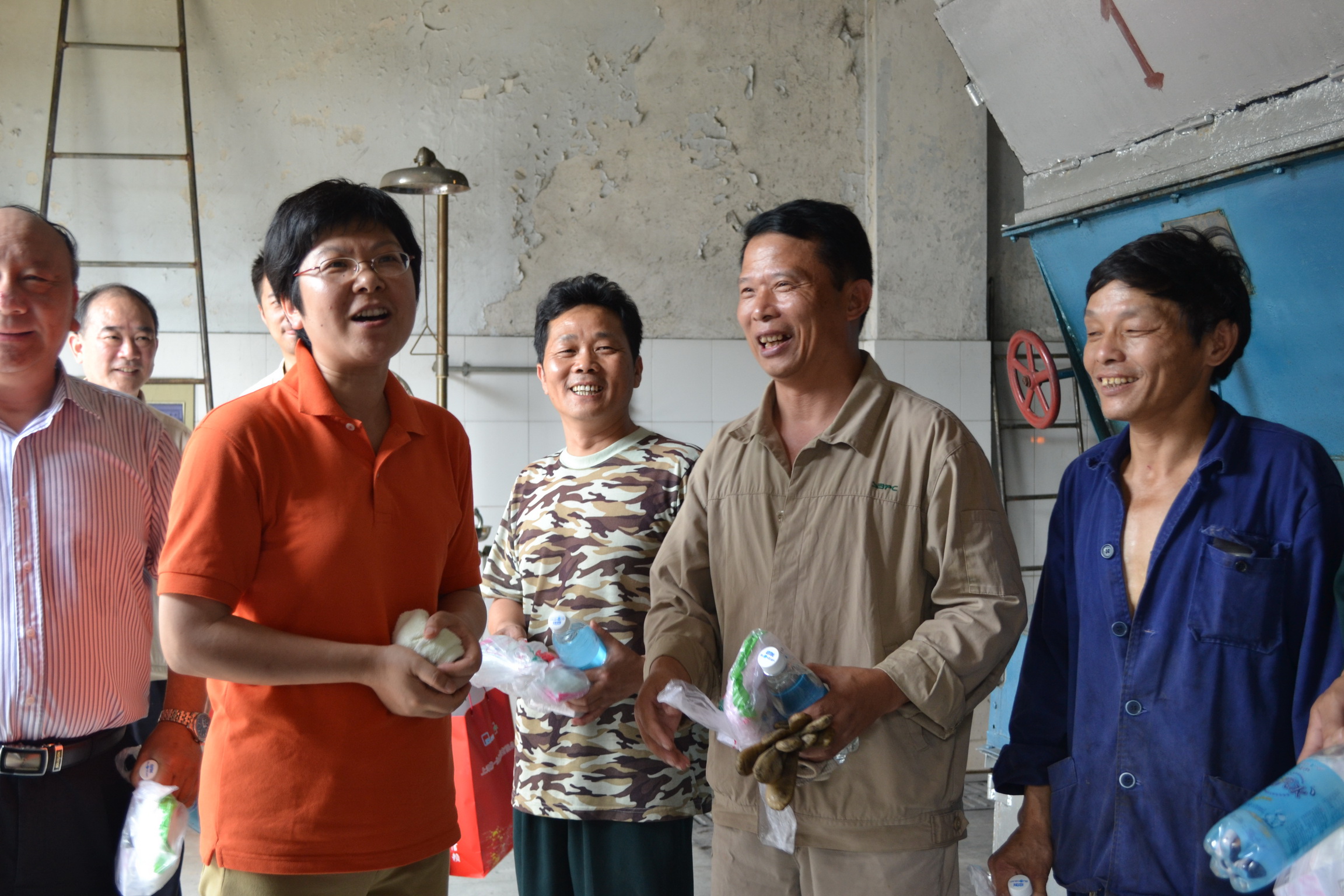 7月19日,上实集团总裁、上海医药集团股份有限公司董事长:周杰,上药集团有限公司董事长:楼定波,上海医药集团股份有限公司党委书记:张震北、副书记:张家林,上海医药工会主席:陈欣,对第一生化一线职工进行了高温慰问并且关切地了解现场作业人员的身体状况和工作情况,送上毛巾、香皂、盐汽水,代表集团对一线工作者高温下坚守岗位、辛劳工作的精神表示感谢。同时叮嘱在当前持续高温的艰苦条件下,安全做好工作的同时,注意休息,劳逸结合,采取有效的防暑降温措施,保质保量的完成当前工作。