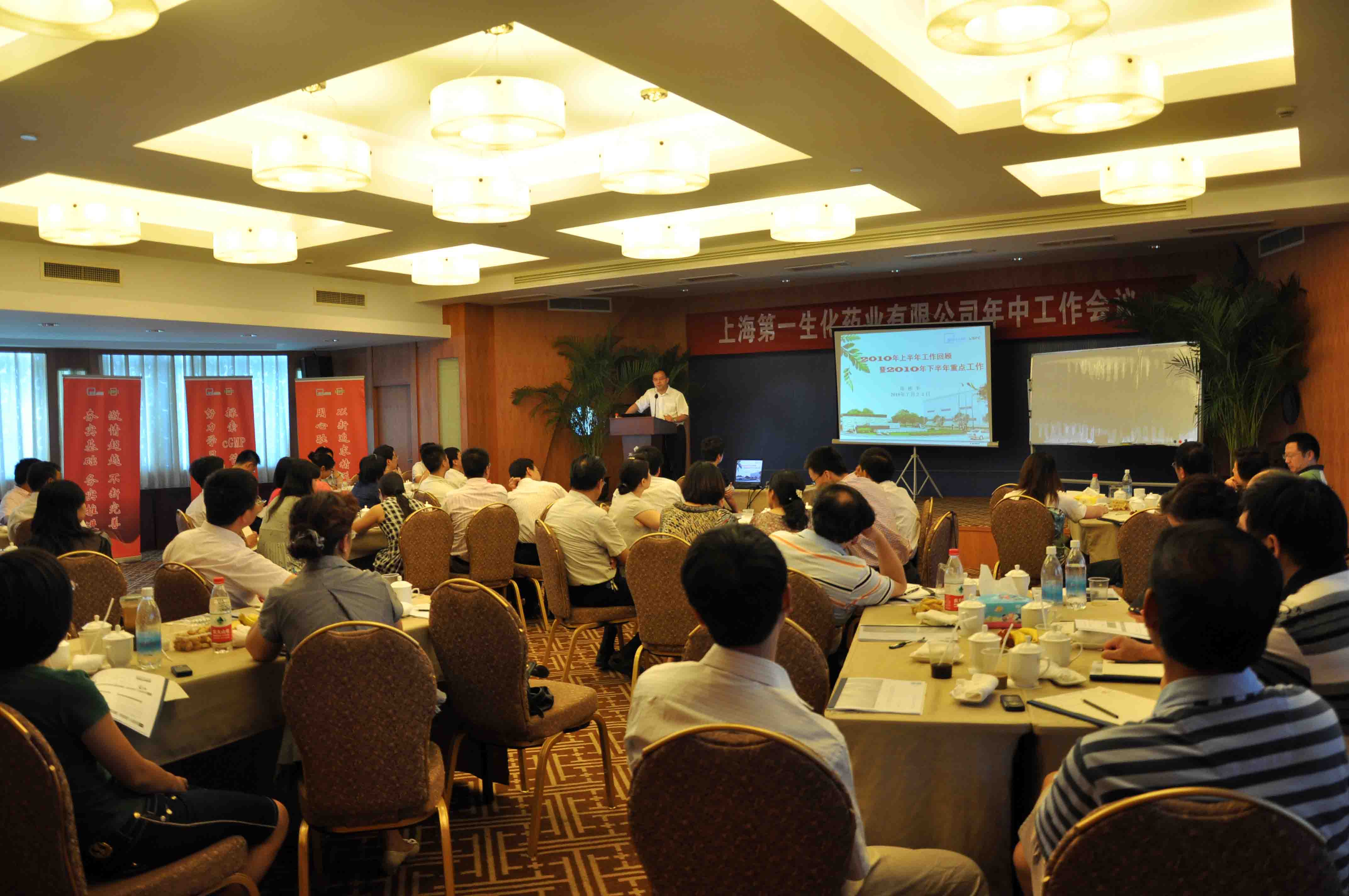 7月23日,上海第一生化药业有限公司假座嘉善梅园大酒店,隆重召开2010年年中工作会议。会议由公司党委书记孙忠达主持,与会人员包括公司中层及以上各级领导、上海紫源药业、三维生物、长城生化厂级领导等。