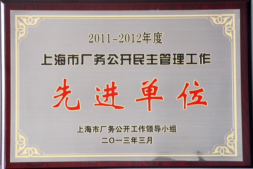 一直以来,上海第一生化药业有限公司始终把厂务公开工作作为提高生产经营管理和企业领导班子领导能力的重要内容来抓,作为构建和谐企业良好环境的重要措施来抓,作为加强监督、防止腐败的重要环节来抓。通过常年的不懈努力,于近日获得“2011—2012年度上海市厂务公开民主管理工作先进单位”荣誉称号。