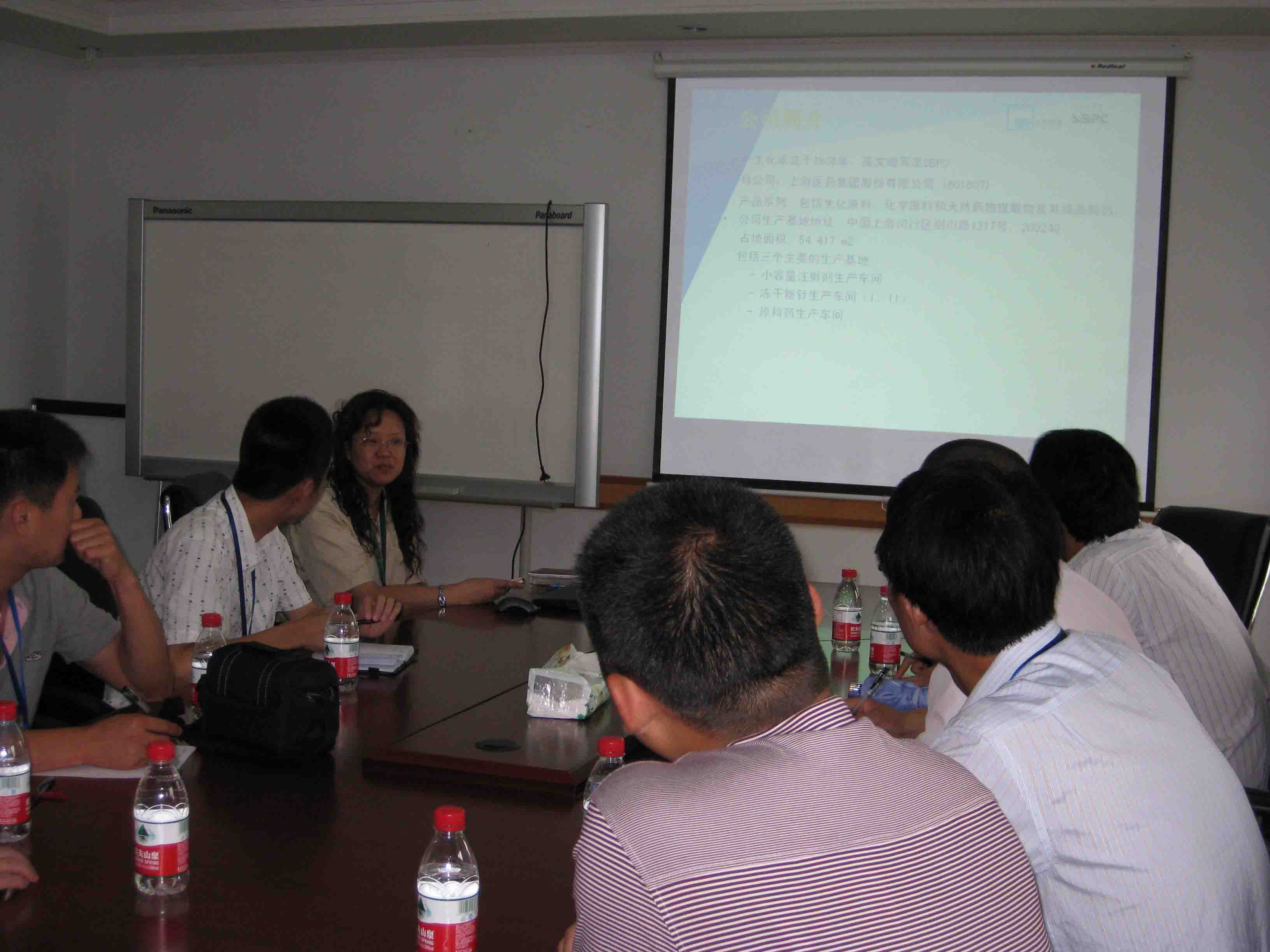 7月13日,联合医药药材公司在采购部徐杰经理的带领下参观了我公司,经营管理部经理陈珍珍带领市场人员接待了这批联合公司新招聘的来自全国各地的城市经理。首先,陈珍珍经理介绍了我公司的整体情况,还对新冻干粉针车间做了详细的介绍,让来宾大致了解公司的发展历程、主要产品。然后市场人员袁魏峰和汪新燕对联合医药药材公司经销的五个主要产品——注射用糜蛋白酶、鱼精蛋白注射液、多巴酚丁胺注射液、缩宫素、三磷酸腺苷二钠(ATP)作了产品知识介绍和市场竞争情况分析,让这批新人对我公司的产品和目前市场地位有了更清晰的认识,他们认真得听着,不时记下笔记,使得随后安排的产品小测试很快完成。